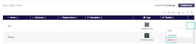 Click the kebab in line with the tenant you want to remove and select Delete.