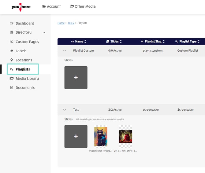 This article explains how to work with screensavers and other playlists on the youRhere CMS