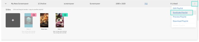 You might need to have multiple playlists running similar slides, with the same settings. To duplicate a playlist using the settings and slides you've already specified rather than starting fresh with a brand new playlist, click the kebab on the right of the playlist you want to duplicate, then click Duplicate Playlist. Click Duplicate to confirm.